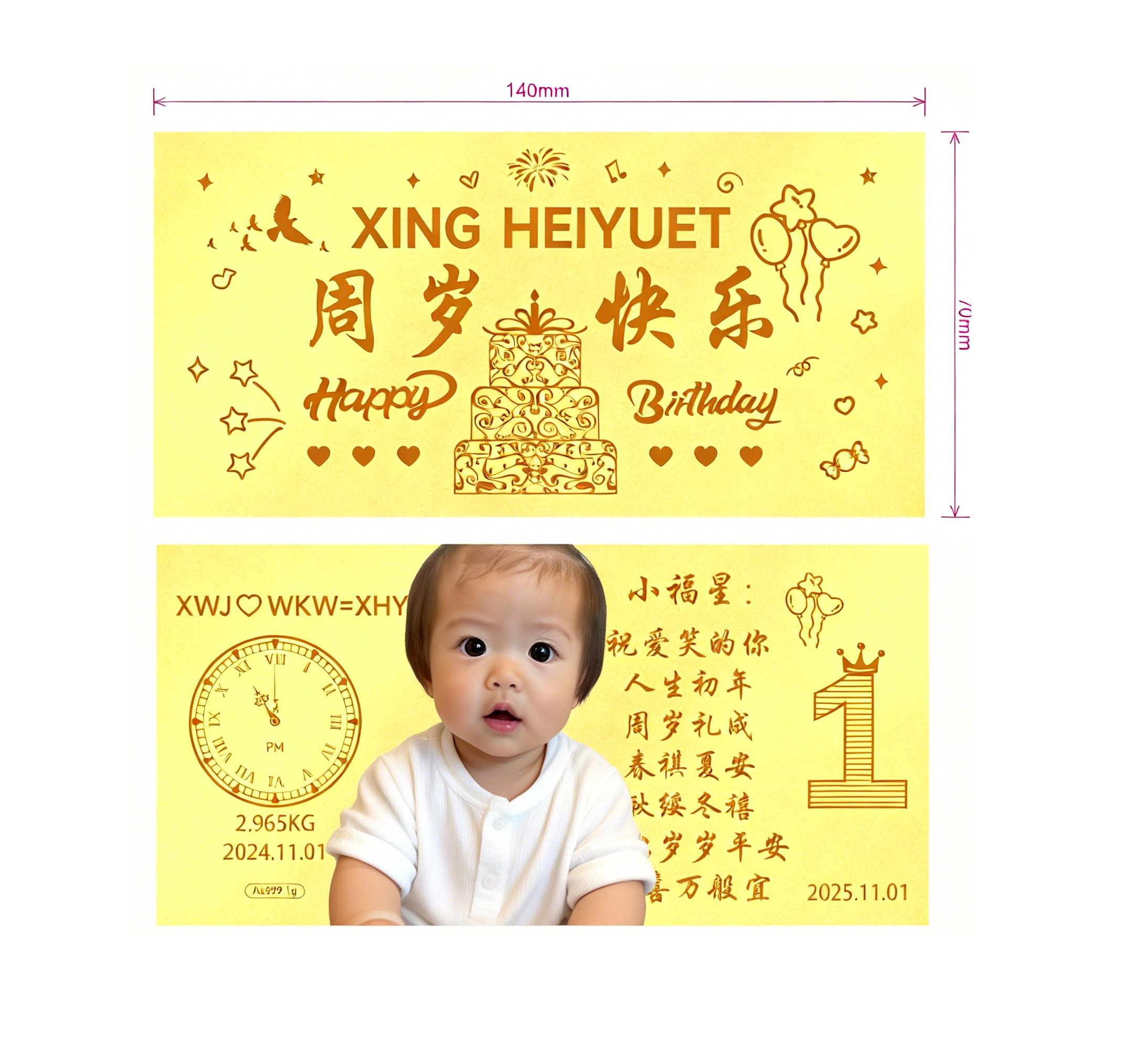 生日快乐1克金钞定制彩印快速出货