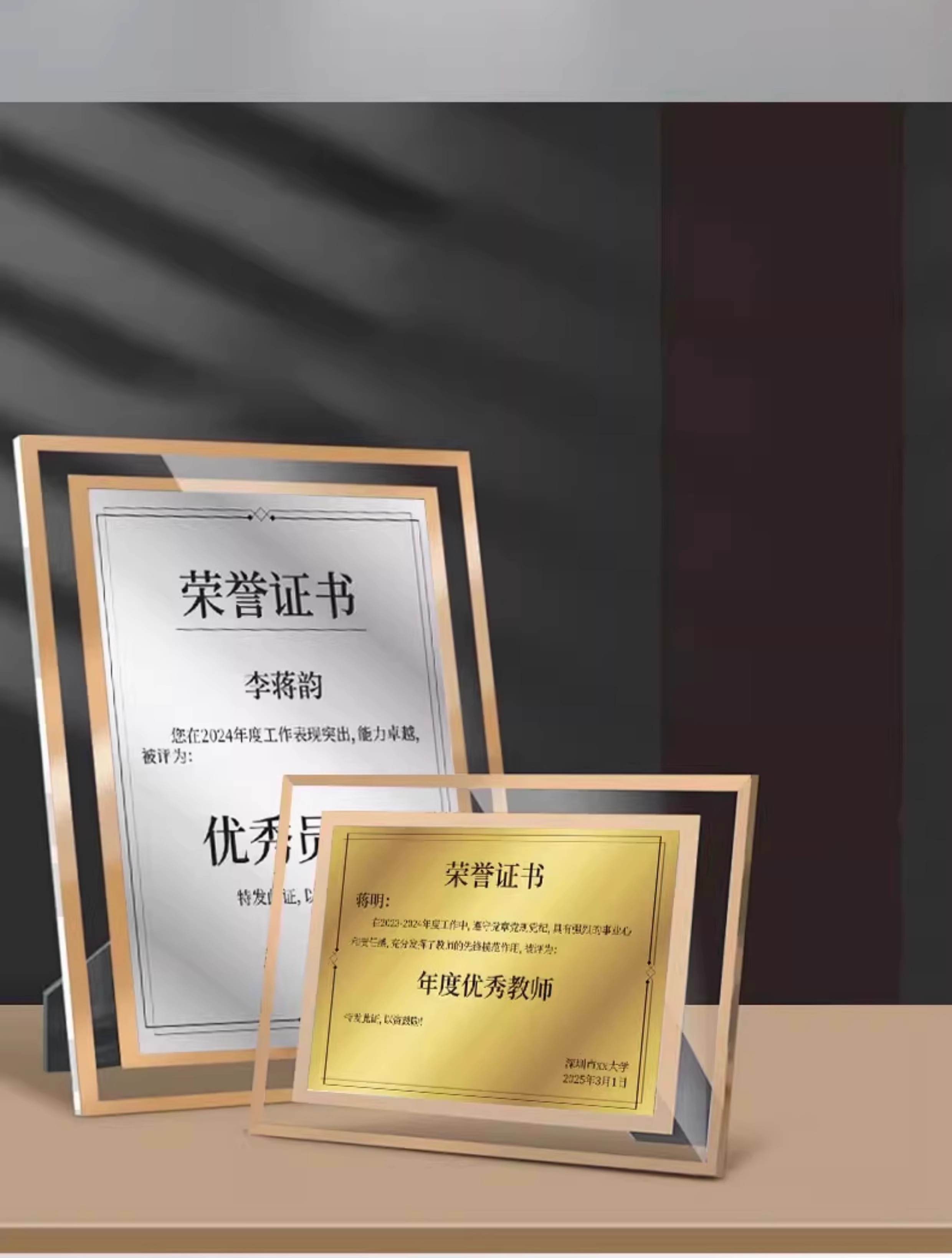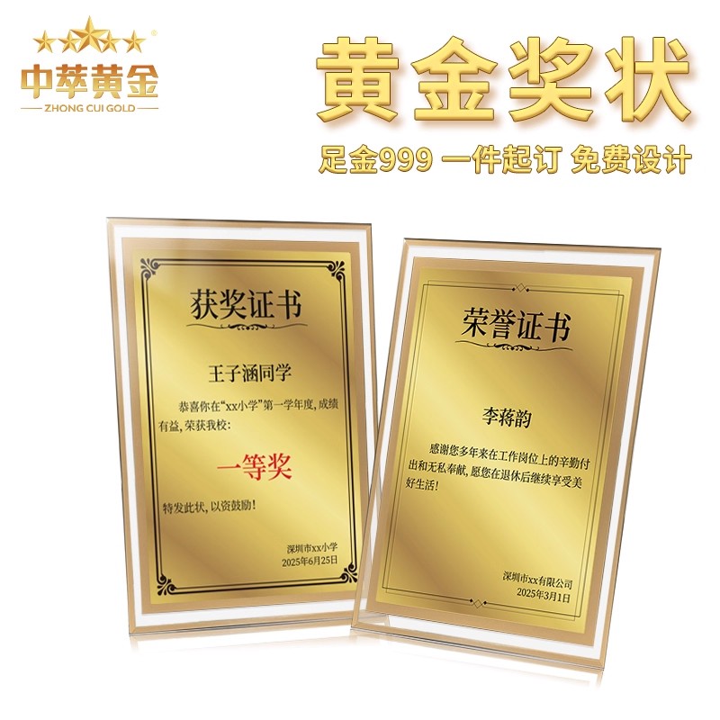 黄金荣誉证书a4证件书相框足金奖状结业授权聘书毕业优秀员工定制