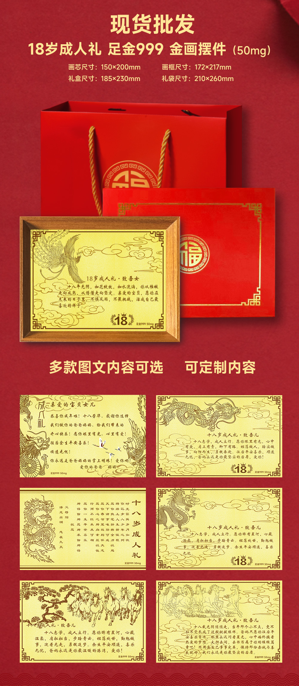 金箔画定制黄金工厂定制 18岁成人礼金榜题名来图定制